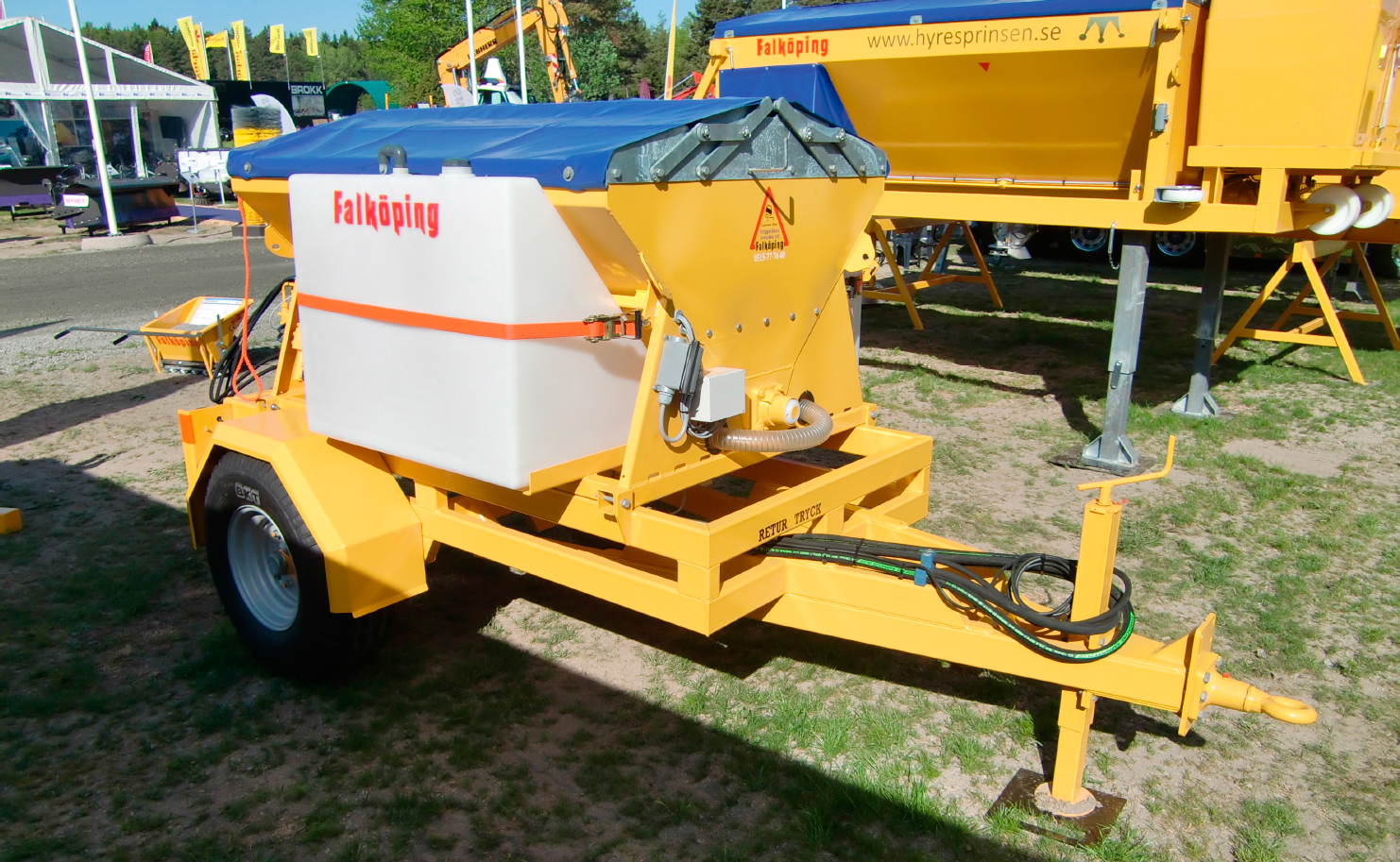 Falköping combi spreader for walking and cycle paths spreading all weather conditions from frost slipperiness to snowfall.