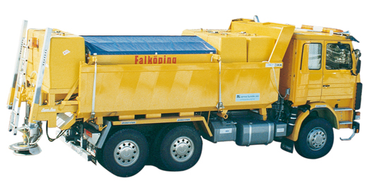 Spreader for solution and salt, either separately or mixed. Membrane pump and double feed screws give very accurate dosing.